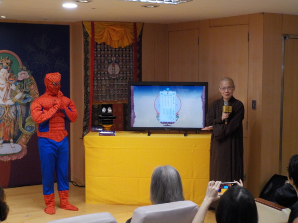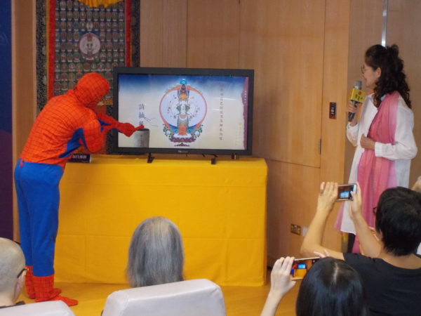 記者會將論壇舉辦期間提供民眾免費抽的電子觀音籤搬到現場,連蜘蛛人也到場,由靈鷲山廣純法師解籤、指點迷津,還能結緣「豬年祈福卡」,吸引媒體朋友關注,搶先體驗。