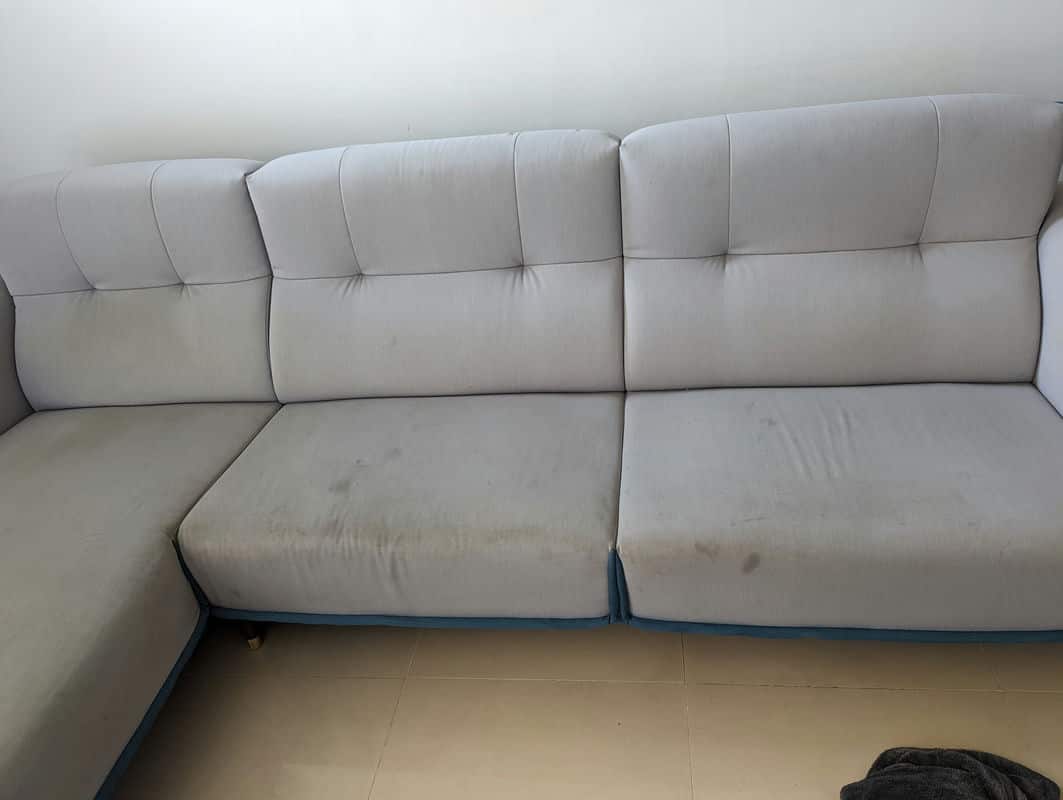 講到這,不得不提我的皮沙發。它本來應該是客廳的焦點,但是移進新家的第一天,我就注意到它表面的污漬和磨損。每個角落似乎都在對我說:“救救我!”我真的很喜歡這張沙發的設計和質感,就是覺得太髒,不能馬上享受坐在上面的樂趣。