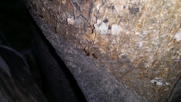 ↑工蟻進出樹皮下的巢