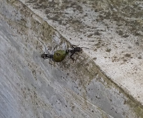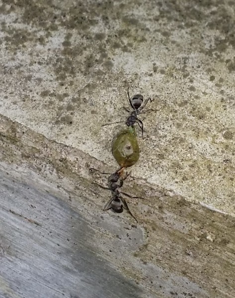 大型蟻。體色灰色,腹節第一、二及二、三節之間有黑色環紋。各腳末端為深紅褐色,要仔細看才看得出來。乍看之下近似灰色的棘山蟻但蟻屬的成員無棘刺且有著較細的身軀。