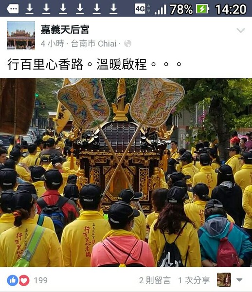 【鬧熱滾滾迎媽祖 嘉義天后宮玉三聖母 徒步百里心香路 今天1日上午起駕 預計明天下午抵達祖廟大內三崁天后宮】