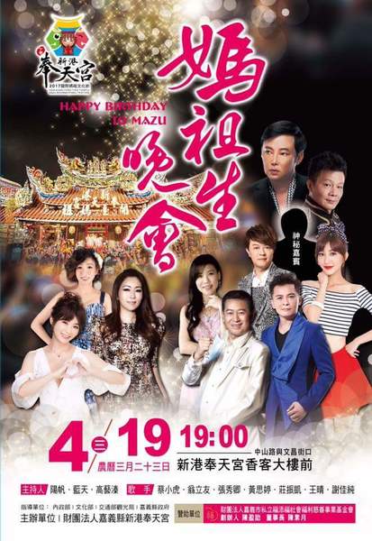 【新港奉天宮 媽祖生 影歌星大型晚會 4月19日 星光閃閃 熱鬧開唱】