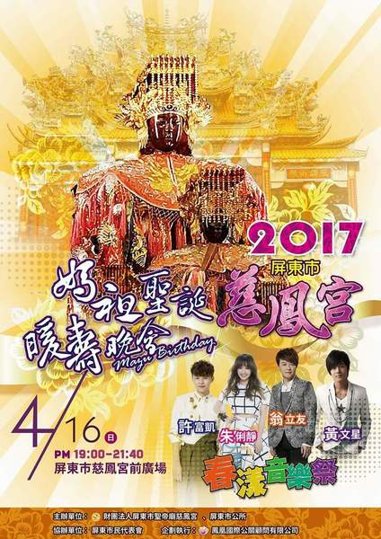 【屏東市慈鳳宮 媽祖聖誕 影歌星大型晚會 4月16日晚上 翁立友、朱俐靜、黃文星、許富凱 熱鬧開唱】