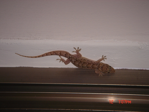大樓公寓很難見到「璧嘛蛇」(客語:就是壁虎),拿起相機就把牠的芳蹤給照下來,太太說:「機會難得,要給佑佑看真實的較好啦!」