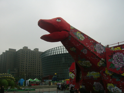 展覽場內只見恐龍,但未見有燈會的影子,也沒如以往發放小提燈,以往結合桃園市的土地公活動,這此土地公已被移到外面,縣內各單位鄉鎮也未參與,真的給人不是很熱鬧的感受