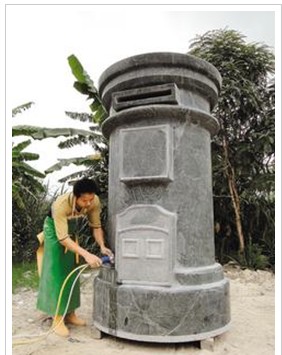 「幸福青鳥蛇紋石郵筒」高233公分、直徑133公分,將設在花蓮港航道海灣處,落實行政院文建會補助辦理「驛站‧藝讚─花蓮港藝術介入空間」計畫中的子計畫。