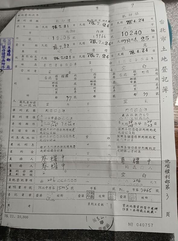 所記載76/7/24當天就已清償解除設定.至78/4/25才再設定.