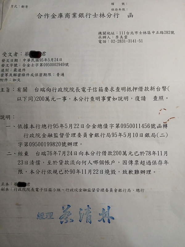 並非我所借貸.之前就向金管會反映過.士林合庫也回函解釋過.