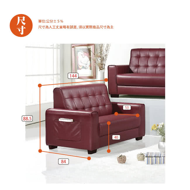 【AS】伊芳雙人座皮沙發-144x84x89cm
