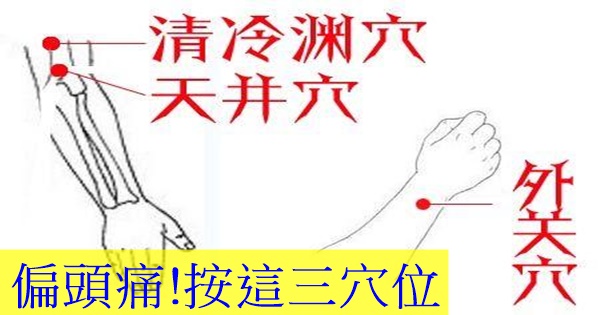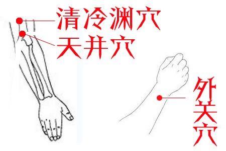 此時可以按摩三焦經肘部的天井穴、清冷淵穴、手腕的外關穴。