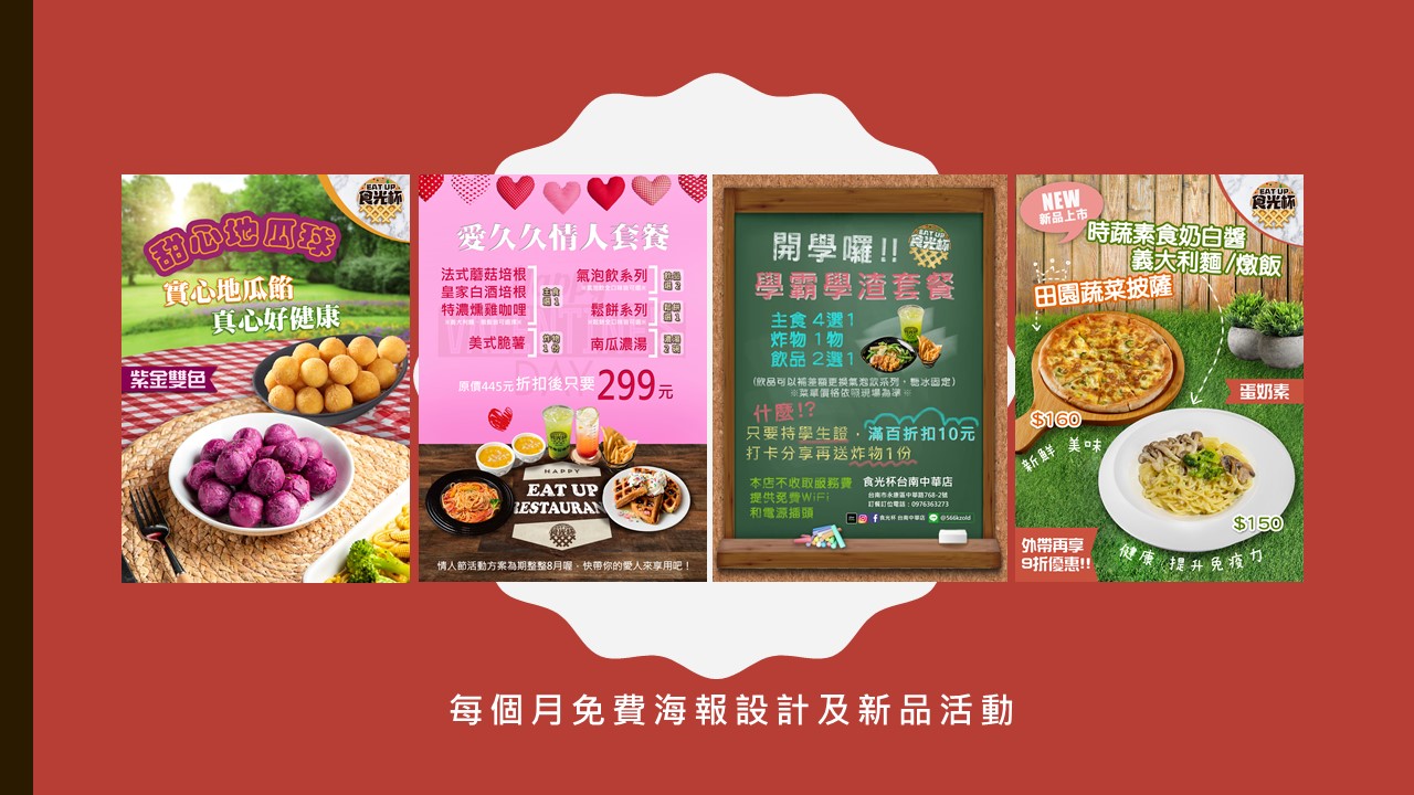 含裝潢、器具設備、桌椅、招牌、POS機、地點協尋、教育訓練、物流配送、紅布條、宣傳單、行銷廣告視覺...等