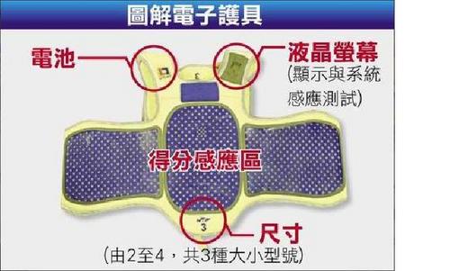 電子護具雖增加比賽公平性,但平均每套3萬元,遠高於傳統護具的2000元。今年廣州亞運已確定採用由南韓開發的護具,也就是目前台灣所採用的規格,但仍有德國及西班牙研發的歐洲系統,正爭取世界跆拳道聯盟認證,可能成為2012年倫敦奧運跆拳道賽正式護具。