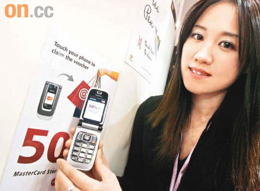 圖片:只須把內置NFC晶片的手機拍向海報,手機便可以從海報取得購物優惠券