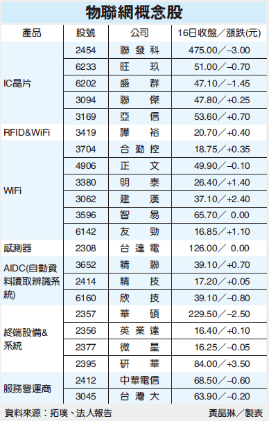 由於近期物聯網題材爆紅,吸引台灣廠商積極參與物聯網商機,IC廠商的聯發科、網通終端設備譁裕、正文、明泰、合勤控、明泰、建漢、智易、友勁,電源供應器台達電,終端設備廠商華碩、英業達、微星研華以及服務營運商中華電信、台灣大哥大、遠傳等均到場,探討物聯網商機。