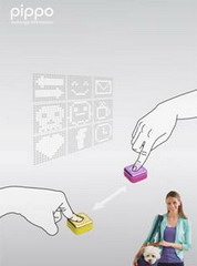 其中,有一台內建微型無線射頻辨識系統(RFID)讀取器的「pippo集果交友機」,除了可連結電腦網路下載或是自訂表情圖案和動畫外,使用者只要按下這台機器上的一個按鍵,就可快速交換個人化資訊、表達心情、傳遞愛意或個性化的創意訊息。