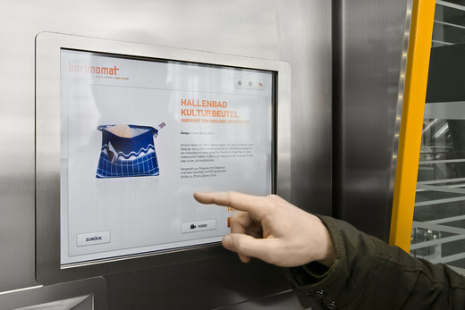 Berlinomat是德國一家指標性的設計商品店舖,在柏林設有旗艦店也有線上購物服務,他們將把販售觸角延伸到柏林大街上,共有42款設計師商品被擺放至自助式服務機台裡,有衣服、飾品配件、旅行用品等等,消費者能直接當場使用鈔票、錢幣或是類似悠遊卡的儲值卡進行消費。Berlinomat嚐試將機台設計,讓消費者與設計商品間的關係不再陌生,打破傳統為了讓被購得商品走入高級的實體店鋪的觀念。