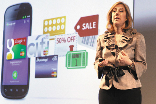Google商務副總裁蒂倫妮絲26日在紐約發表「Google 錢包」行動付款服務,Google隨後立即遭eBay和PayPal提告,指控「Google錢包」是竊取PayPal商業機密發展而成。(美聯社)