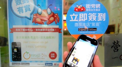 一年前指出簽到由於無法帶來實際意義,所以是不痛不癢,只是在 NFC 的加持及店家的配合下,簽到便有更多的發揮空間,拿以下的影片示範中提到的 Orangi-Yo 做例子。這家店舖售賣的是 Yogurt,他們選擇把 NFC 簽到貼紙貼在門外,並在旁邊提醒凡首次簽到者,圴會送贈一款乳酪配料的優惠。對「執輸行頭慘過敗家」香港人來說,這個優惠無需付出金錢,只需簽到便可以得到,能夠有效吸引駐足了解一番或直接詢問,即時取得優惠。