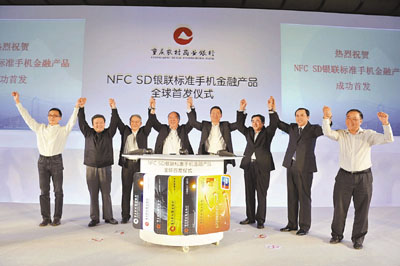 重慶農村商業銀行(3618)日前與中國銀聯、重慶城市通卡公司、宏達(HTC)、上海方付通在重慶舉行「NFC SD銀聯標準手機金融產品」全球首發儀式,「手機銀行走天下」成為現實,為信息產業和金融產業一次成功融合。