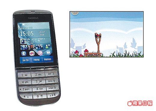NOKIA Asha 300搭Series 40系統,2.4吋螢幕,500萬畫素相機,內建《Aangry birds》遊戲,售價85歐元,約3619元台幣,年底前上市。