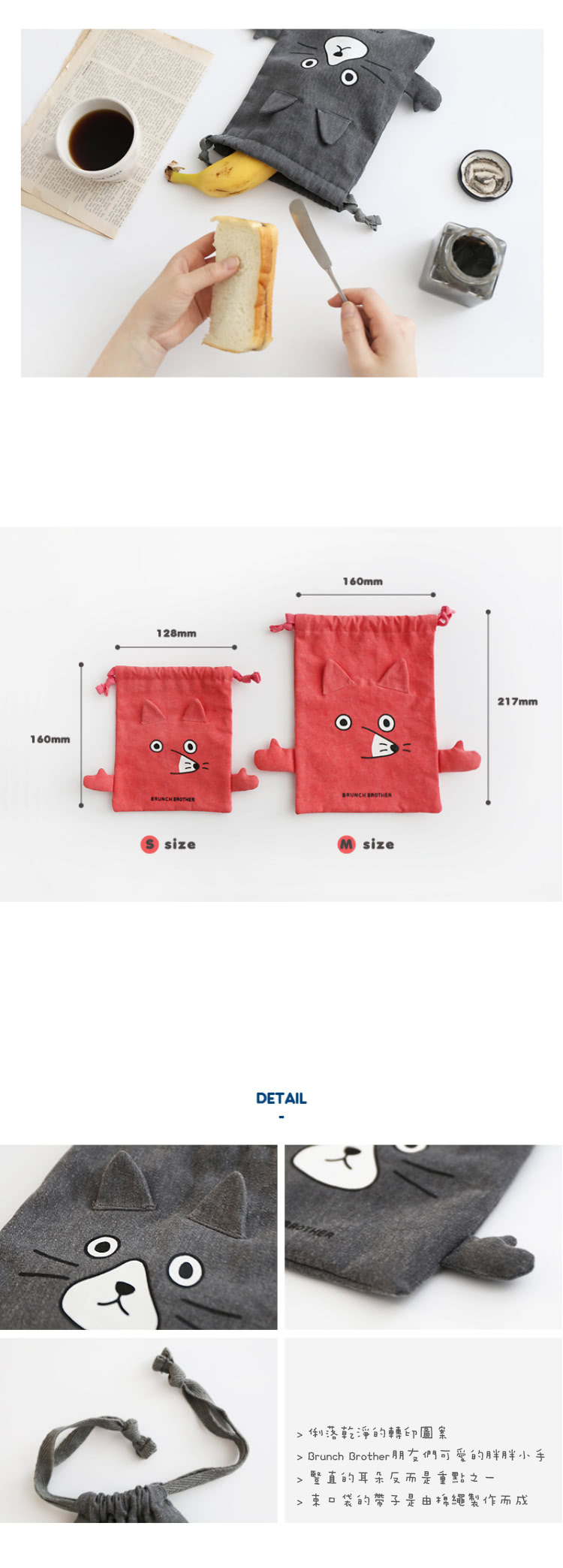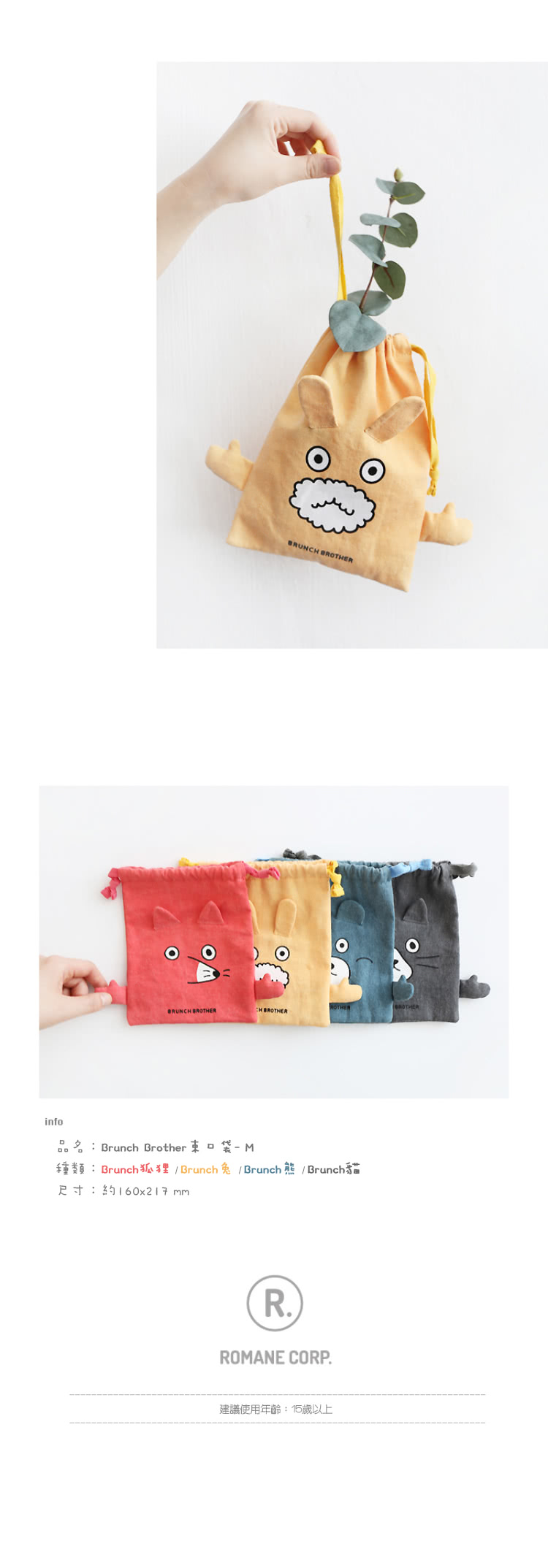 注意事項:本商品僅為'Brunch Brother 束口袋'本體,不含圖內其他內容物或裝飾、示範/示意、點綴品。