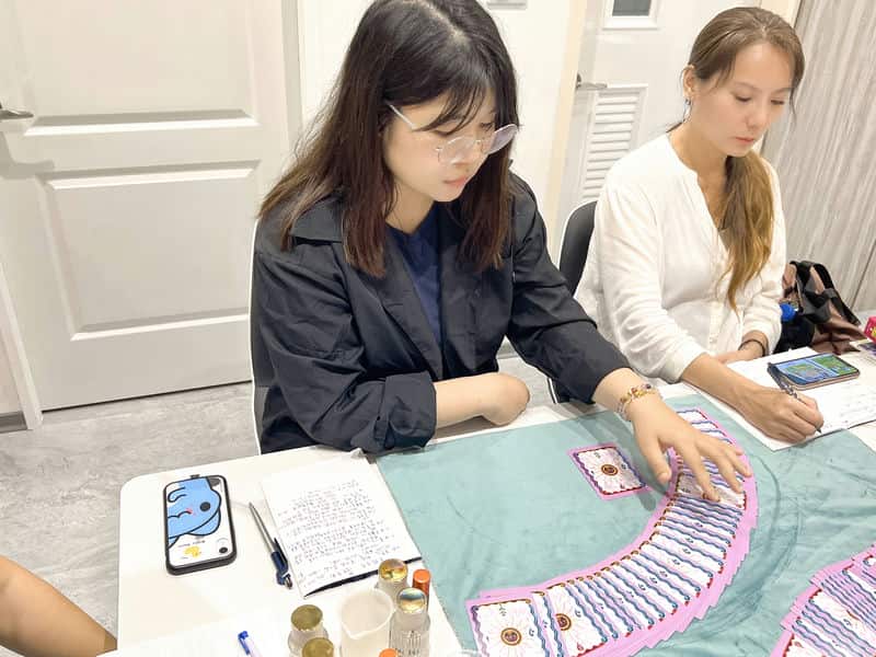 直到有一天,我遇見了怡霏老師。她的言談舉止中透露出的智慧和靈性深深吸引了我,讓我心生敬意。和她交談的每一刻,都讓我感受到了一種前所未有的平靜和安寧。就在那一刻起,我決定要跟著她一起學習塔羅牌。