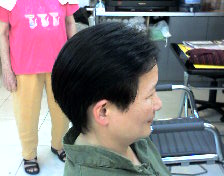 我說:「不用了!我不想再綁頭髮了,也不要有鬢髮遮住耳朵,前面要清爽,後面隨你剪,反正我也看不到…。」