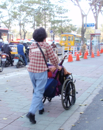 後來有一位熱心的護理師去找來一把可以坐著稱的秤,才知母親只有42公斤,我們還說怎麼會,她重的像個石頭,有時推輪椅遇到路不平的地方,不小心把老娘倒出去,還要靠熱心的路人幫忙,才能幫老娘歸位。