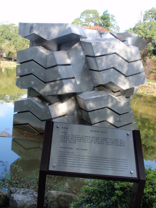 這次在環湖步道,發現又多了一個礙眼的東西,起先以為是在施工中的水泥箱涵,近看才知是國外藝術家的作品。