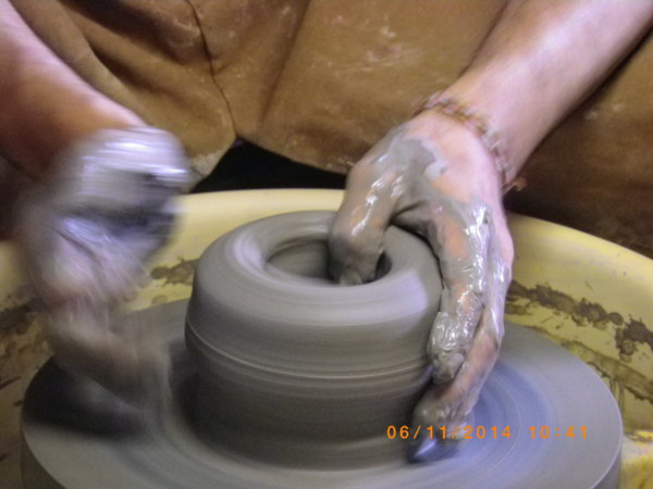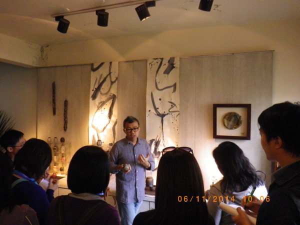 第1站到達-谷垚陶坊(垚是堯的古字,音同),谷源滔老師親切熱情的接待,逐一介紹陶作的元素與運用,對於疑問是有問必答,展示空間結合居家生活美學,師母並為大家烹泡茶解說陶杯皿的製作故事.谷老師在解說導覽之餘,還在浪漫音樂聲中親自示範捏陶拉胚.谷圭陶坊生活藝術村 新北市三芝區後厝里蘭陽街40號 電話 02-8635 1580