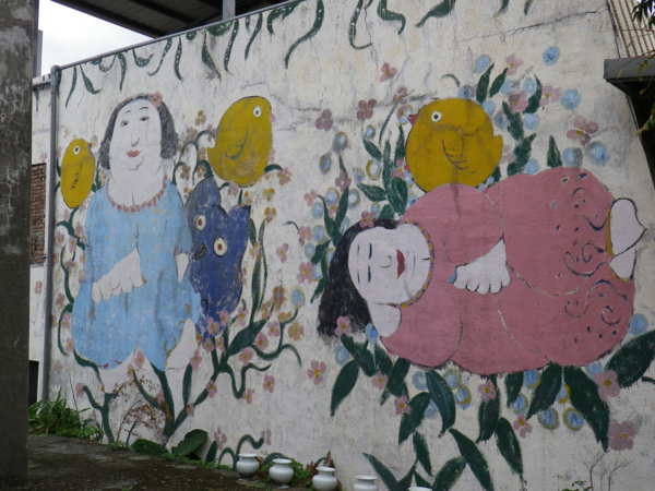 第3站-守靜堂 胖太太工作坊 吳仲宗老師以其妻胖胖 豐腴 圓潤為發想,自創了"胖太太"的品牌形象,賦諸多的藝術產品予生命及故事,吳老師自述其學習的心路歷程,由廚房拿鍋鏟的廚師,到才藝班混在毛頭小娃中拜師學畫,買相機學攝影,追求餐廳胖女生...,轉折又轉的故事最後,他放下來到三芝開荒靜修,以他的太太為創作發想,隨性 自然 簡單 圓滿為其訴求,因而開發出商機無限-新時尚圓融美學.