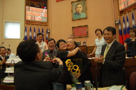 前天市議會為他準備生日蛋糕,市議員不分黨籍,都獻上祝福,但昨