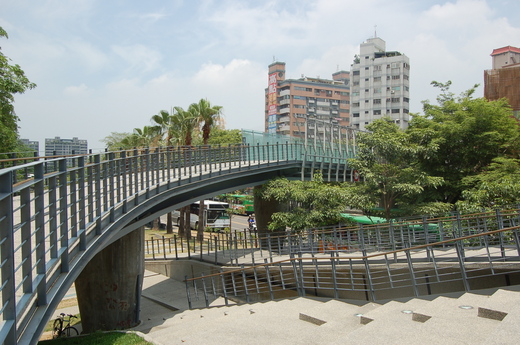 中興大學外的景觀橋,中興師生鮮少有人行走,原因是從中興小禮堂出來,上橋到對面的公園,這段路不是師生必經的路徑,本來就沒人走,硬是蓋一座天橋,得繞遠路,還得曬太陽,誰想走呢?難道還要砸錢培養行走族群嗎?