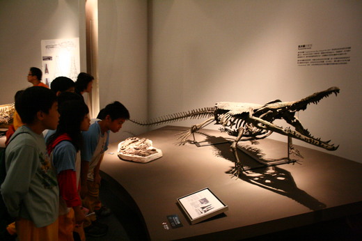 二○○六年在澎湖西嶼發現的「潘氏澎湖鱷」,是台灣地區最古老的脊椎動物化石,距今一千五百多萬年,這次也一起展出,復原後約五公尺長,是恐龍界的新屬、新種,並以發現者潘明國命名。