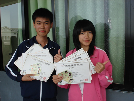 高三學生蔡譯德表示,國中基測成績只有21分,進入嘉陽奮發圖強,獲電腦軟體應用丙級、乙級證照外,還有中文打字、英文打字、網頁設計等乙級照證,「現在爸媽再也不會責怪玩電腦了」。