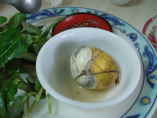 這個東西,就是越南的著名美食「鴨仔蛋」。吃過的人也許見怪不怪,但沒吃過也沒聽過的人,可能就「嚇很大」囉!