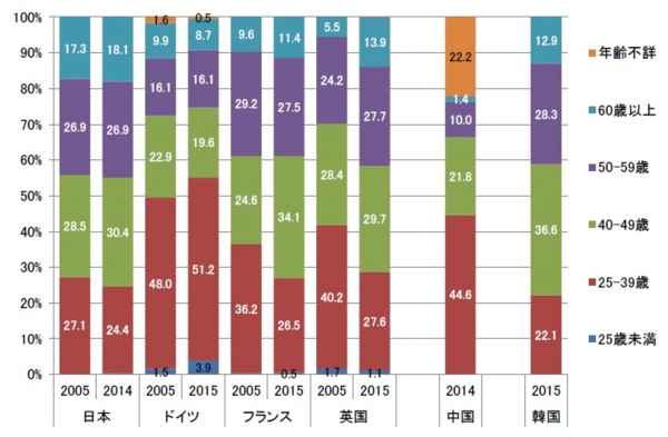 我在103年3月開了ㄧ個稱為「屏東德國學院」(https://www.facebook.com/groups/263278627186000/)的專業學習社群(professional learning community, PLC),陸續聊ㄧ些德國事,感覺已經中斷些時日。剛看到日本文部省出了ㄧ份報告,探討日本能從德國的高等教育學到什麼東西。其實,只要ㄧ張圖就知道要趕緊把孩子送到德國唸大學,因為大學教員年紀在25-39歲之間者超過半數。