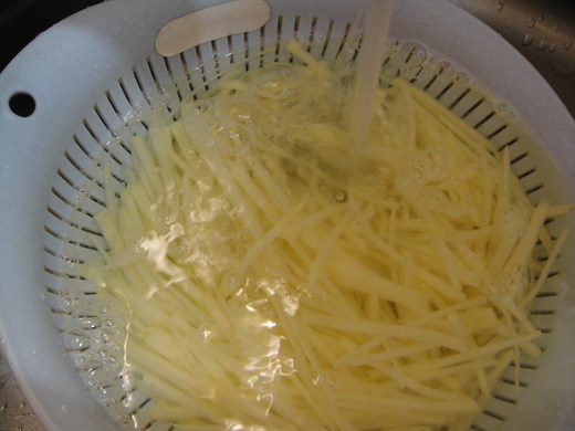 2.將洗淨的馬鈴薯絲瀝乾,準備入油鍋。