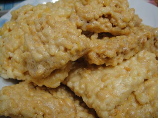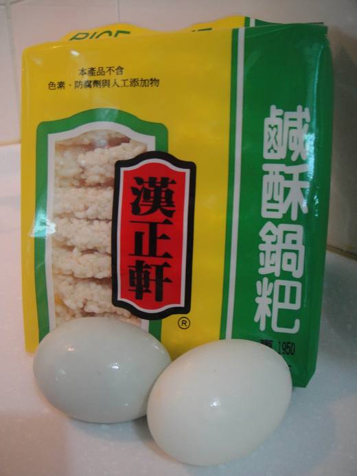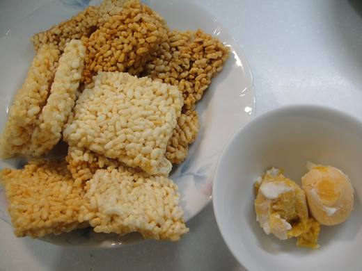 食 材:鍋巴數片、鹹蛋黃兩個(視用餐人數斟酌用量)、沙拉油。