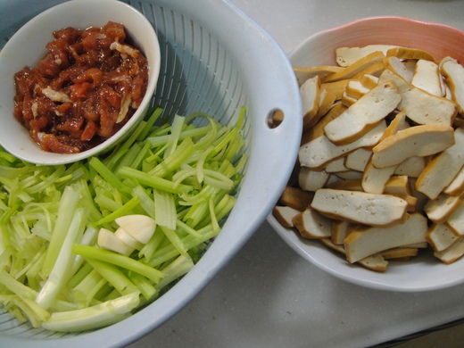 食 材:芹菜、豆干、小里肌切絲、蒜片。