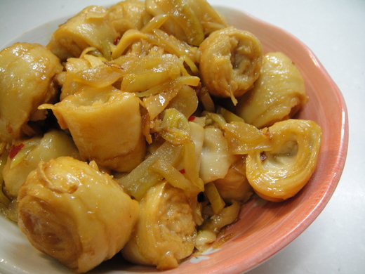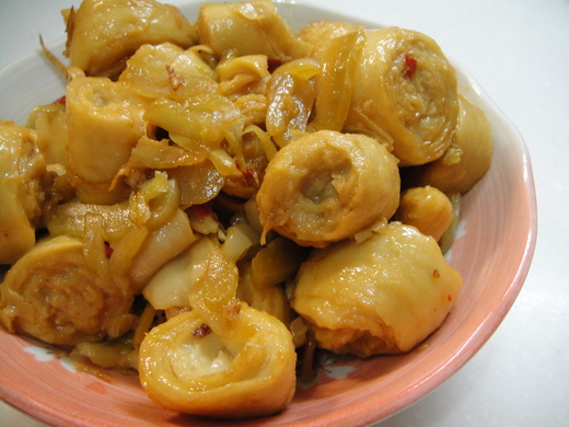 麵腸有許多料理方法,像是鹽酥、醬燒、三杯或是糖醋好吃,搭配酸菜和薑絲,滋味更是絕搭。