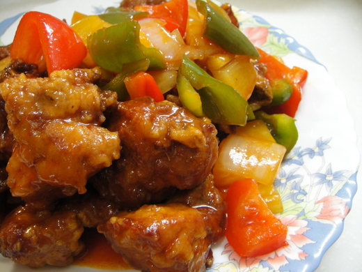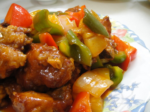 糖醋勾汁掛芡的醬汁,沾附在排骨和時蔬上,酸甜味平衡了肉塊經過油炸的油膩感,讓食饕著迷。