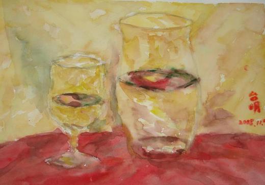 第一幅畫是 2009 年 5 月 2 日最近畫的,第二幅畫是 2008年 11月 9 日我畫的第一張水彩畫,每星期去上畫畫課對我來說是最愉快的一件事,第三張是孩子2009年 4 月 30 日白袍加身時與同班同學的合影,雖然還不敢說自己能完全放下責任,但也算苦盡甘來了!