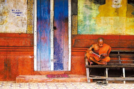 在色彩斑斕的牆壁中,西藏高憎盤踞一旁,聚精會神的閱讀著!!
