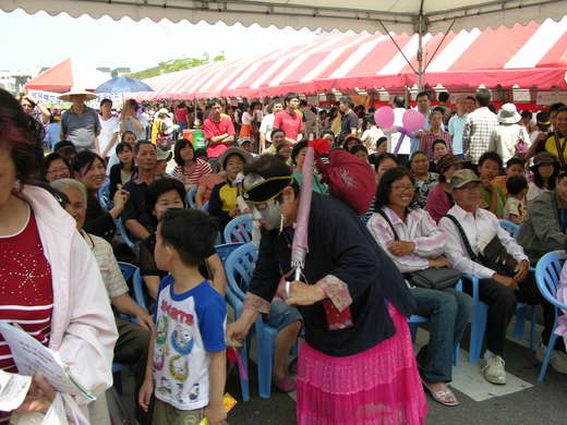 今天南華里12婆姐陣在市府西側廣場演出,婆祖媽走到人群中主動撫