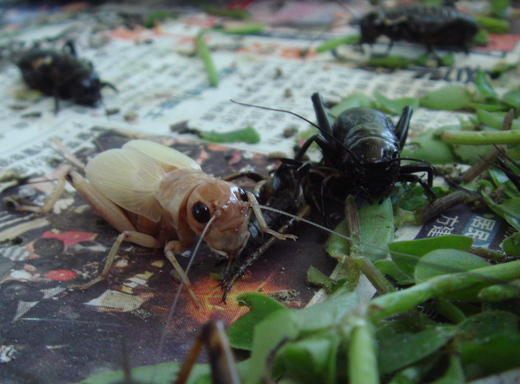 原來是蟋蟀剛脫殼,過一段時間就會轉黑,只有人工飼養的蟋蟀,才