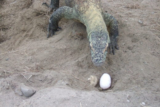 8月為科摩多龍交配、繁殖期,9至3月產卵,母科摩多龍會將卵產在