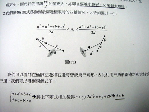 於第三邊等觀念,逐步推理,前後花了10個月。過程中,因太多個朱