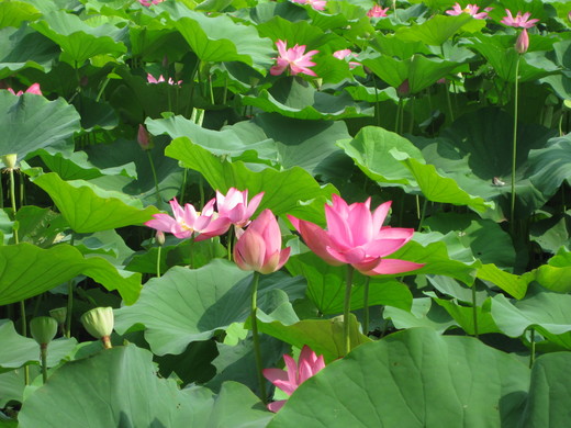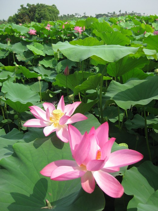六月白河蓮花盛開,但夏天天氣酷熱,想避開酷熱天氣,又能欣賞蓮花,到白河鎮竹門綠色隧道似乎是不錯的選擇;竹門綠色隧道兩旁有林葉茂密的芒果樹遮蔭,沿路有不少蓮花池,粉紅色的大賀蓮在綠色荷葉的襯托下,令人驚豔。要前往竹門綠色隧道可駕車至白河鎮市區後,沿中山路向北行駛,沿路有指標,並不難找,清晨5時天剛亮,或是黃昏下賞蓮,各有不同的感觸。記者黃宣翰