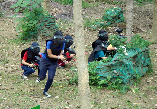 ,採對抗賽,由教練指導使用漆彈槍的技巧後,雙方互相掩護對打,